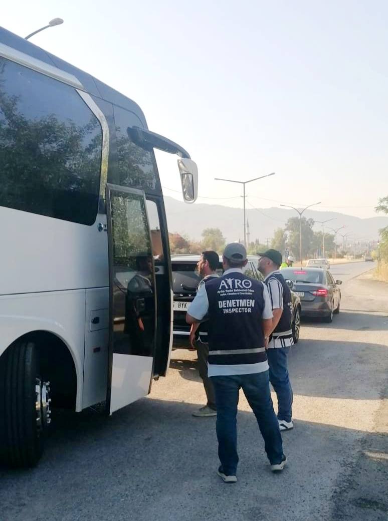 28.06.2025 tarihinde Aydın ili Çine ilçesinde; Aydın Kültür ve Turizm Müdürlüğü , ATRO ve TUREB Turist Rehberleri Birliği işbirliği ile denetim gerçekleştirilmiştir. Denetimde 6 adet rehbersiz tur faaliyeti, 1 adet belgesiz rehberlik faaliyeti, 3 adet belgesiz acentecilik faaliyeti, 2 adet sözleşme yapmayan rehber tespit edilmiştir.