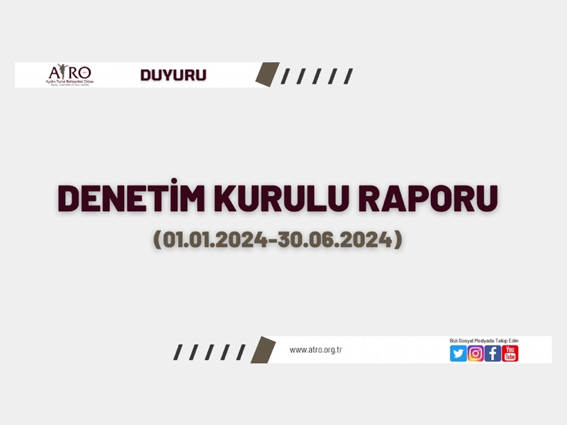 Aydın Turist Rehberleri Odası 2024 yılı 01.01.2024 / 30.06.2024 Dönemi Denetim Kurulu Raporu odamızın atro.org.tr resmi internet sayfasında yayımlanmaktadır.