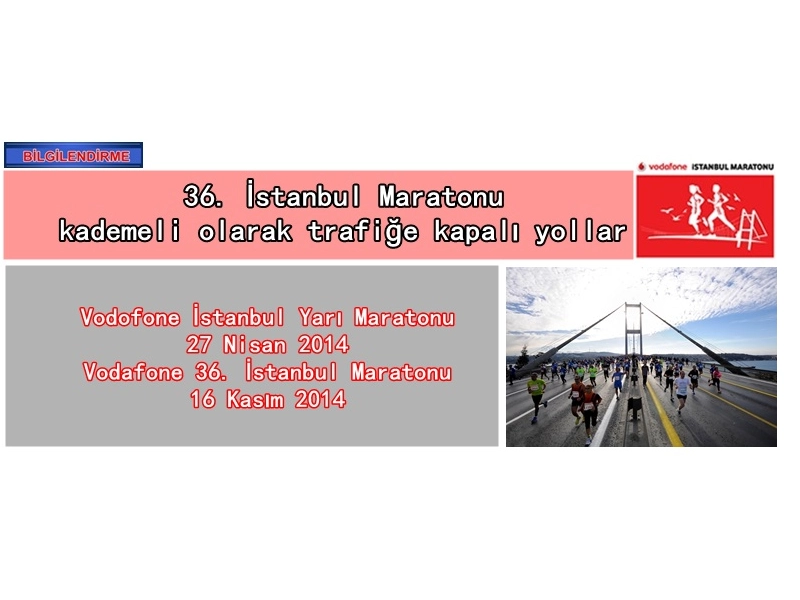 İstanbul Büyükşehir Belediyesi Spor A.Ş. Genel Müdürlüğü’nden alınan yazılarda, 27 Nisan 2014 tarihinde Vodofone İstanbul Yarı Maratonu, 16 Kasım 2014 tarihinde ise Vodafone 36. İstanbul Maratonu düzenleneceği belirtilerek,ganizasyon sebebi ile ekte yer alan yolların kademeli olarak trafiğe kapatılacağı bildirilmiştir.
