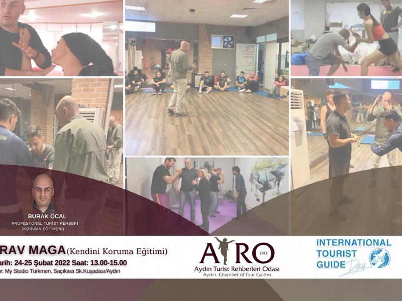 Odamız tarafından 21 Şubat Dünya Rehberler Günü etkinlikleri kapsamında; Profesyonel Turist Rehberi / Koruma Eğitmeni Burak ÖCAL tarafından 24-25 Şubat 2022 tarihlerinde Krav MAGA (Kendini Koruma Eğitimi) verilecektir. Bay ve Bayan karma olarak gerçekleştirilebilecek Kendini Koruma Eğitimimiz sportif bir aktivite değildir. Çok efor sarf ettirmez, Koruma Eğitiminin temelinde “Krav Maga” yatar. Sokakta başınıza gelebilecek saldırılara karşı kendinizi korumayı amaçlar, dolayısıyla dışarıda nasıl giyiniyorsanız öyle eğitime katılabilirsiniz. Krav Maga, bütününde 32 saat temel eğitimi içerisinde silahlı/silahsız saldırılara karşı, kas reflekslerinizi yönlendirerek öğretilir. Bu 32 saatte sonra ek olarak bir 10 saat daha aynı saldırılara karşı yanındakini koruma ve en sonunda 26 saat ek eğitim ile de 2.yi koruma/yakın koruma (Vip, değerli kargo vb) eğitimiyle tamamlanır. Sizlere bu toplam 4 saatte uzuvlarla (kol, tekme, kafa) saldırı, tehditler, ve sarılmalara karşı koruma eğitimi verilecektir.
