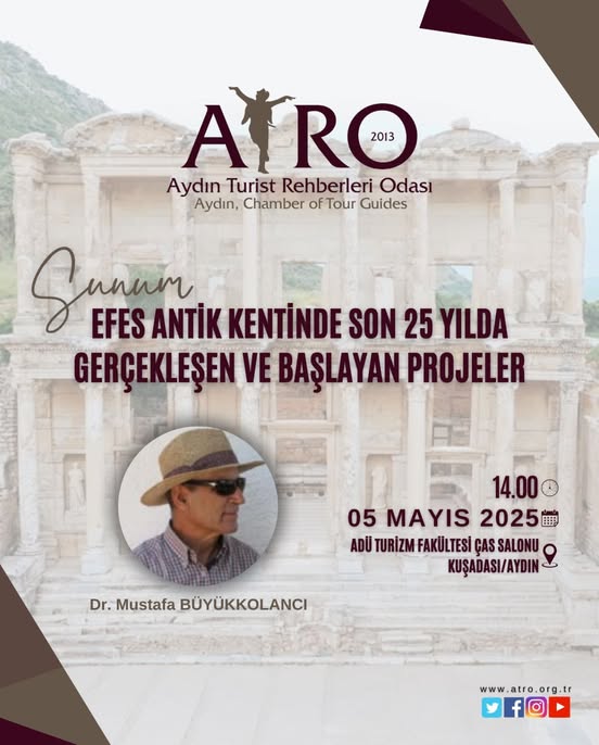 Odamızın eğitim faaliyetleri kapsamında 05.05.2025 tarihinde Dr. Mustafa BÜYÜKKOLANCI’nın anlatımıyla “Efes Antik Kentinde Son 25 Yılda Gerçekleşen ve Başlayan Projeler” konulu sunum düzenlenecektir.