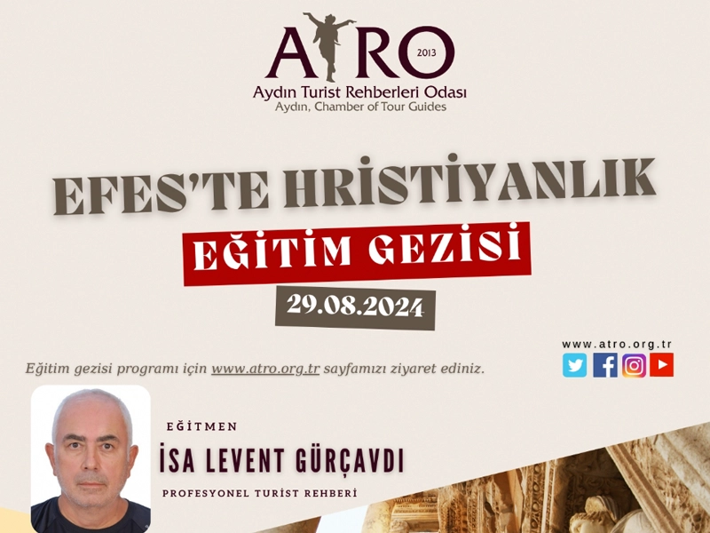 Profesyonel Turist Rehberi İsa Levent GÜRÇAVDI eşliğinde “Efes`te Hristiyanlık” konulu eğitim gezisi planlanmıştır.
