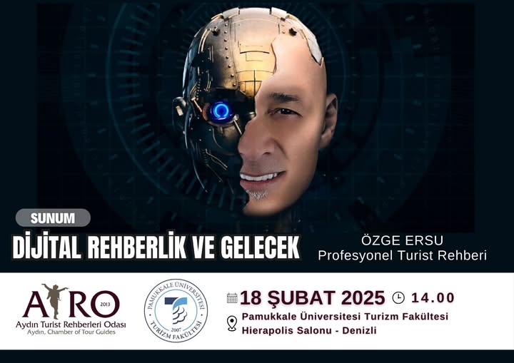 Odamızın eğitim faaliyetleri kapsamında 18.02.2025 tarihinde Pamukkale Üniversitesi Turizm Fakültesi Hierapolis Salonunda, Profesyonel Turist Rehberi Özge ERSU’nun anlatımıyla “DİJİTAL REHBERLİK VE GELECEK” konulu sunum düzenlenecektir.