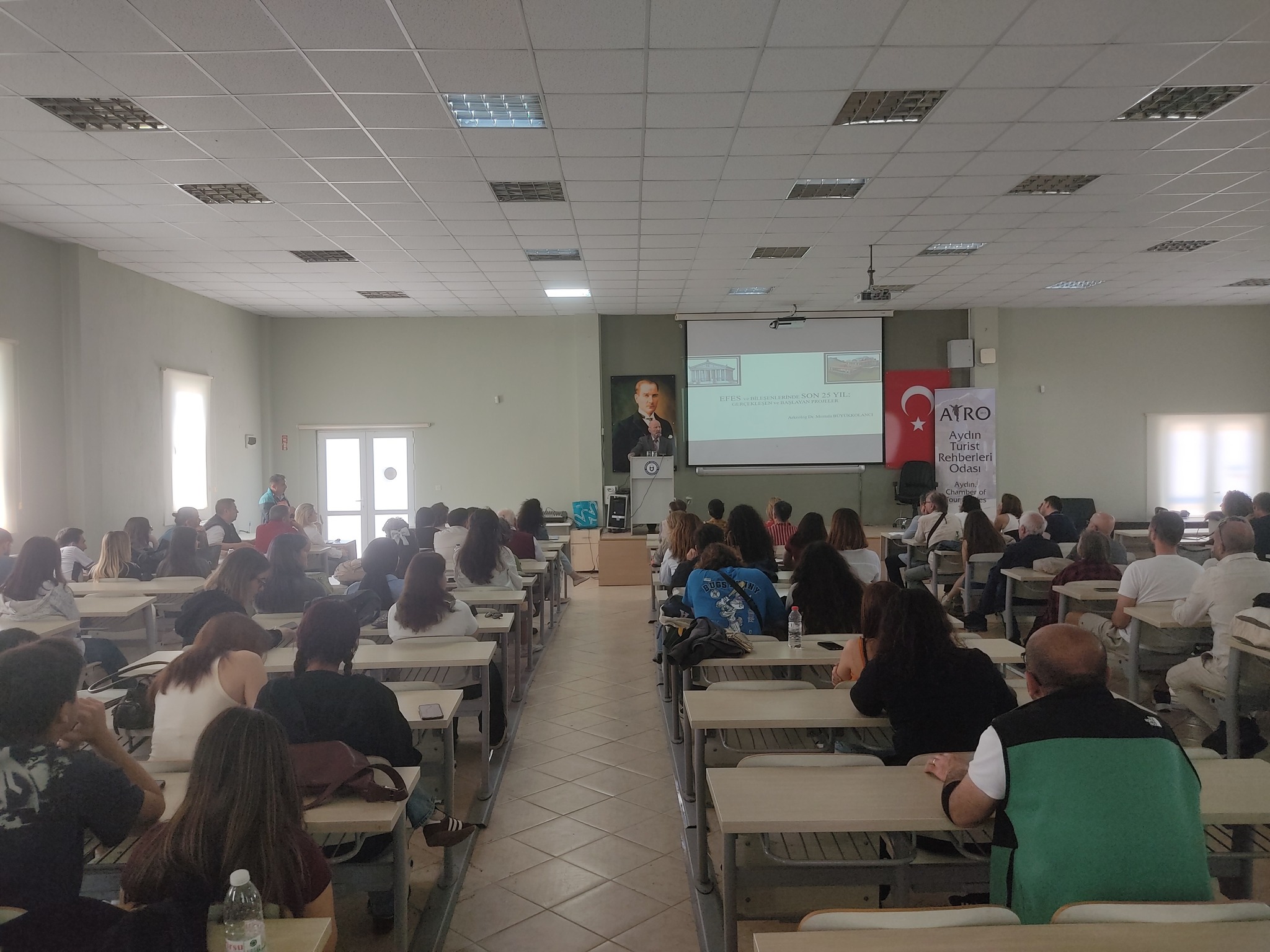 Odamızın eğitim faaliyetleri kapsamında Dr. Mustafa BÜYÜKKOLANCI’nın anlatımıyla “Efes Antik Kentinde Son 25 Yılda Gerçekleşen ve Başlayan Projeler” konulu sunum; üyelerimizin ve ADÜ Turist Rehberliği öğrencilerinin katılımıyla 05.05.2025 tarinde gerçekleştirilmiştir.